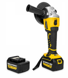 PARAMÉTEREK Modell: PM-CAG-18V Névleges feszültség: 18V Motor típusa: Kefe nélküli Névleges fordulatszám: 8500 ford. /perc Maximális tárcsaátmérő: 125 mm Orsómenet: M14 Súly akkumulátorral: 2,5 kg Névleges feszültség: 18V Akkumulátor kapacitása: 3,0 Ah Akkumulátor típusa: Li-Ion (F18 + rögzítési típus) Maximális töltési idő: ~ 2 óra Töltő: Quick Charge 2A BELEÉRTVE Akkus daráló PM-CAG-18V 2x 18v 3Ah akkumulátor (F18 + P3.0) A pajzs kulcsa A fogantyú Quick Charge F18 + fali töltő Szállítási tok Felhasználói kézikönyv PL PARAMÉTEREK Modell: PM-CAG-18V Névleges feszültség: 18V Motor típusa: Kefe nélküli Névleges fordulatszám: 8500 ford. /perc Maximális tárcsaátmérő: 125 mm Orsómenet: M14 Súly akkumulátorral: 2,5 kg Névleges feszültség: 18V Akkumulátor kapacitása: 3,0 Ah Akkumulátor típusa: Li-Ion (F18 + rögzítési típus) Maximális töltési idő: ~ 2 óra Töltő: Quick Charge 2A BELEÉRTVE Akkus daráló PM-CAG-18V 2x 18v 3Ah akkumulátor (F18 + P3.0) A pajzs kulcsa A fogantyú Quick Charge F18 + fali töltő Szállítási tok Felhasználói kézikönyv PL Erős és kényelmes sarokcsiszoló Powermat PM-CAG-18V 125 mm, 18 V-os Li-Ion akkumulátorral, akár 3,0 Ah kapacitással. Az akkumulátor használható más kompatibilis Powermat akkumulátoros készülékekben F18+ rögzítéssel . A használt kefe nélküli motor kevesebb energiát fogyaszt . A nagyméretű neodímium mágnesek használatának köszönhetően a motor megnövelt teljesítményt és hosszabb munkavégzést tesz lehetővé egyetlen akkumulátortöltéssel, miközben csökkenti az eszköz általános méreteit . A kefe nélküli motornak nincsenek kopásnak vagy sérülésnek kitett kefék formájában lévő súrlódó elemek. Ez a fajta motor gyakorlatilag hibamentes és nagyon energiatakarékos . A nagy, 8500 ford. /perc fordulatszám hatékony működést tesz lehetővé olyan helyeken, ahol nincs áramellátás az elektromos hálózatról. A kapcsoló kialakítása és az elektromos kéziszerszám központi részében elhelyezett elhelyezése megkönnyíti a munkát. Tökéletesen illeszkedik a kézbe és a készletben található, mindkét oldalra szerelhető fogantyú növeli a készülék stabilitását működés közben . A pajzs könnyen forgatható szerszámok használata nélkül . Elég lazítani a csatot , beállítani a burkolat helyzetét és újra rögzíteni a csatot. A darálót gumi borítja , amely megvédi a készüléket a mechanikai sérülésektől, növeli a markolat szilárdságát és csökkenti a kézből való kicsúszás kockázatát. A kiegészítő levegőbemenetek biztosítják a motor jó hűtését folyamatos terhelés alatti működés közben. A készülék kis méretei megkönnyítik a nehezen hozzáférhető helyeken történő munkát. Áramtalan helyeken is könnyedén használhatjuk a Powermat csiszolót a nagy kapacitású akkumulátorok használatának köszönhetően. A kefe nélküli motor lágyindítás funkcióval és motor túlterhelés elleni védelemmel rendelkezik. Ha az árnyékolás blokkolva van a készülék bekapcsolásakor, az elektronikus rendszer automatikusan észleli a motor túlterhelését, és leválasztja a motor tápellátását, hogy ne sértse meg a tekercset. A lítium-ion akkumulátorokat nem kell teljesen lemeríteni az újratöltés előtt. Más típusú akkumulátorokkal ez nem lehetséges, mert akkor az élettartamuk lerövidül az ún memória effektus. Az F18 + akkumulátorrögzítési szabvány használatának köszönhetően készülékek egész sorához használhatunk egy akkumulátort. Kompatibilis akkumulátorok többek között: PM-WA-18V2 csavarhúzóval és PM-MWA-18V ütvefúróval A töltő FAST CHARGE funkcióval rendelkezik. Ennek köszönhetően a készletben található 3,0Ah-s akkumulátor kb 2 óra alatt teljesen feltölthető A töltő támogatja a Powermat F18 + akkumulátorrögzítő rendszert. A készlet két darab F18 + P3.0 lítium-ion akkumulátort tartalmaz 18 V feszültséggel , 10 db 18650-es, nagy áramhatékonyságú cellával és 3,0 Ah teljes kapacitással. A készülékbe épített LED-es akkumulátor töltésjelző Li-Ion cellákhoz . Amíg a daráló működik, az akkumulátor aktuális töltöttségi állapota folyamatosan látható. Az egész készlet tartós műanyag szállítótáskába van csomagolva.