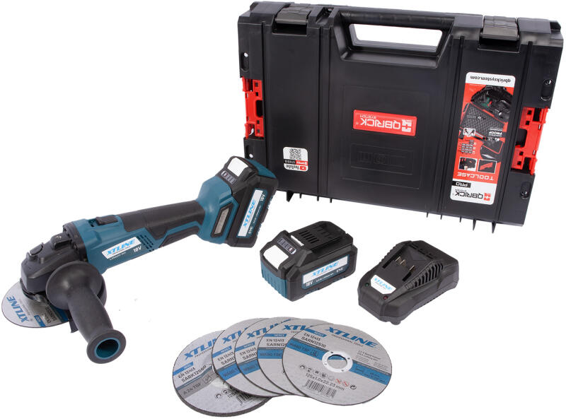 XTline s. r. o XTLINE XT102835-2B5B / Akkus sarokcsiszoló 18 V, szénkefe nélküli, 2 akkumulátorral, töltővel, dobozban (XT102835-2B5B)